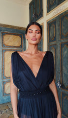 This dress moves like dusk becoming night, like the last candle flickering before a new star rises.